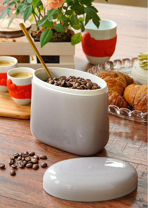 Créée pour exalter et conserver l’arôme et la saveur du café grâce à sa fonction isotherme. Cette boîte à café novatrice est en matière plastique bicolore.
